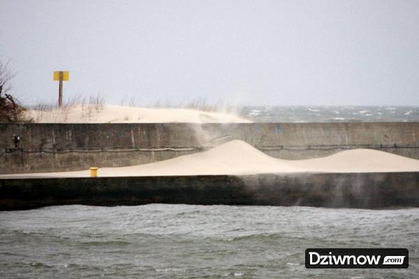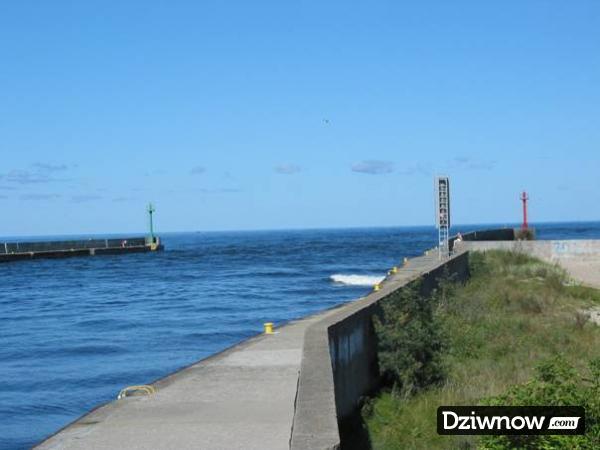 Na zachodnim krańcu plaży, przy ujściu Dziwny znajdują się dwa falochrony zbudowane w końcu XIX w. Jest to dobre miejsce do wędkowania. Wejście do portu od strony morza osłaniają dwa falochrony (wschodni 356 m i zachodni 342 m). Głębokość na wysokości głowic falochronów wynosi 3,0 m; w osi kanału (z umocnionymi brzegami) – 4,0m, a przy zakręcie – 4,5m.